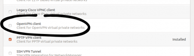 2. Na tenda de aplicacións, busca o GNOME Control Center e activa o add-on VPN Client. Alternativamente, podes instalar o paquete network-manager-openvpn-gnome co teu xestor de paquetes preferido.